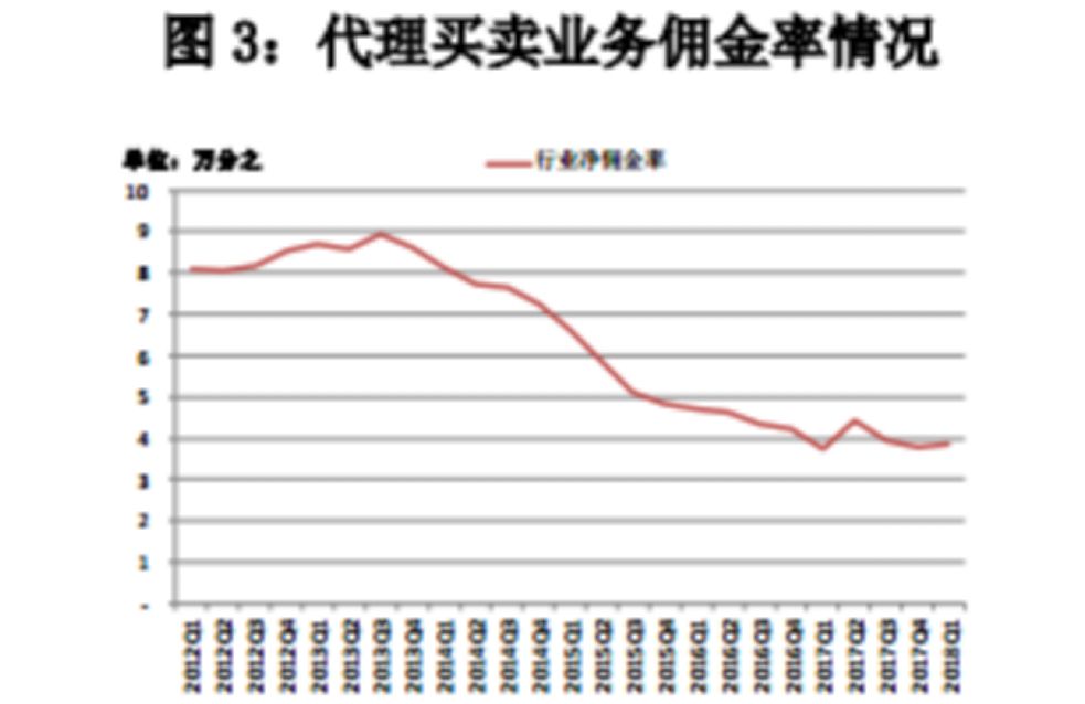 2018年一季度,证券行业平均佣金率为万分之3.88,这一数字高于去年一季度的万分之3.78,佣金持续下滑态势得到缓解。北方大型券商分管经纪业务的副总裁告诉券商中国记者,这也意味着,有部分证券公司可能正在进行“提佣自救”。
