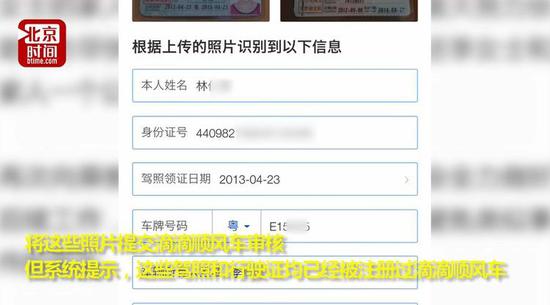 但系统提示,这些驾照和行驶证均已经被注册过滴滴顺风车,无法提交审核。