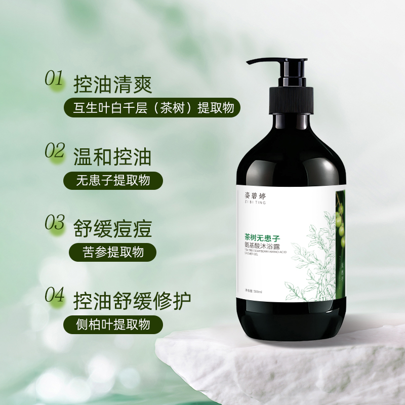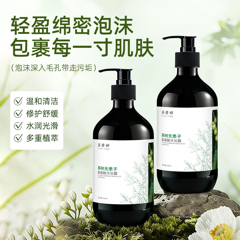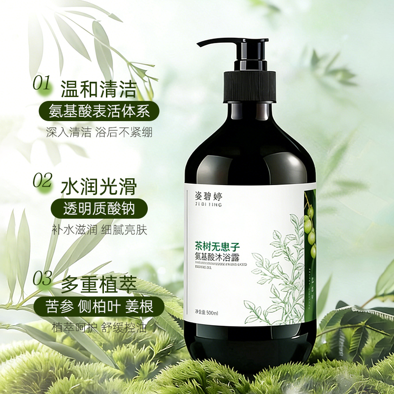 一、卓越净养抗痘:姿碧婷茶树无患子氨基酸沐浴露
