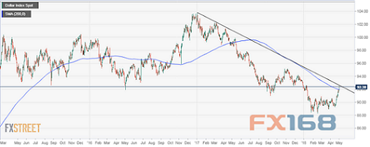 ICE美元指数在过去两周攀升约3%。这种升势逆转了美元在2017年呈现的总体下行趋势。